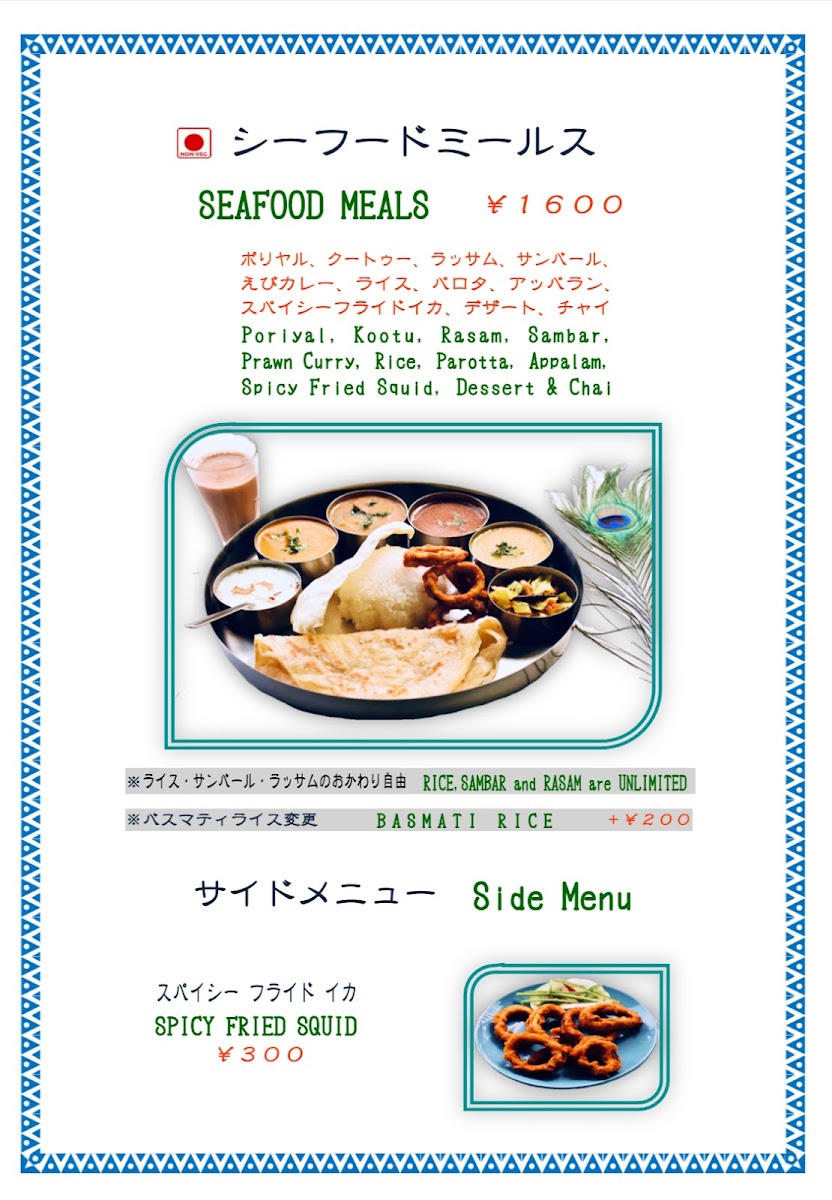 Welcome to Madras Meals, a hidden gem in Nakahara Ward, Kawasaki, that transports you straight to South India with every bite. This cozy restaurant is renowned for its authentic offerings, such as dosa, idli, and aromatic curries that cater to both meat lovers and vegans alike. Customers rave about the unique flavors and generous portions, with specialties like the keema dosa and spicy fried chicken standing out as favorites.
